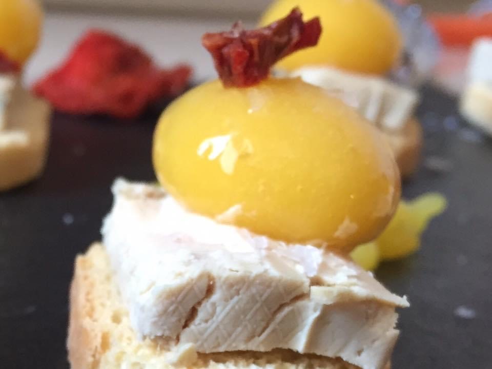 Tostas de Foie con esferas de Mango